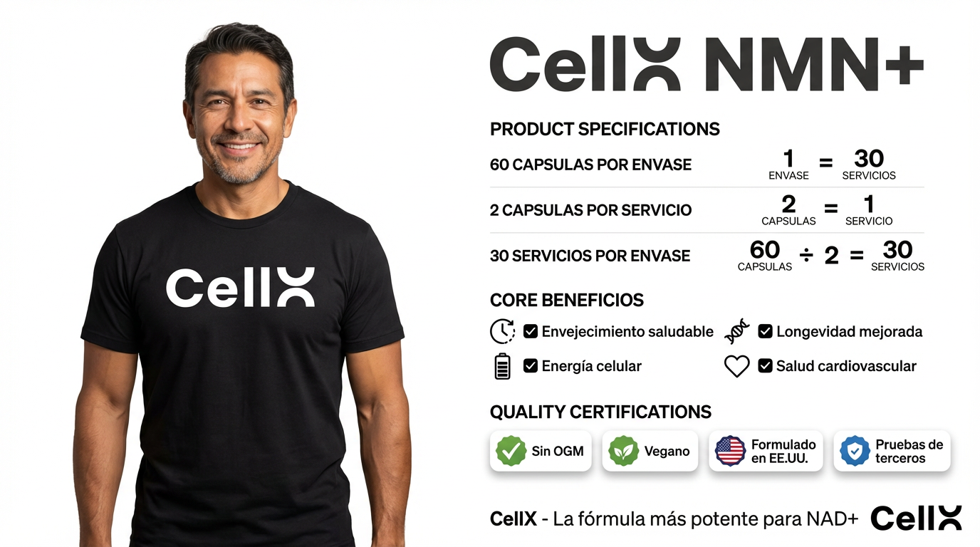 - NMN (β-Nicotinamida Mononucleótido): ingrediente relacionado con procesos naturales de energía.